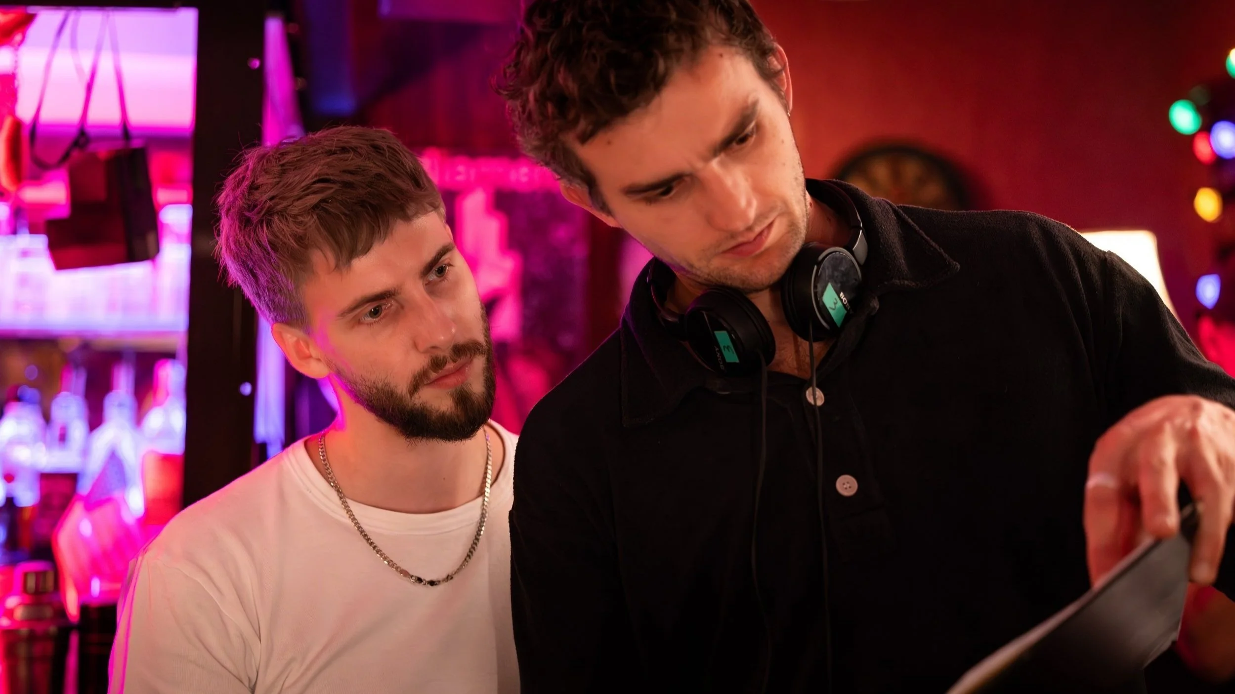 Oliver Bush (Pictured Left) on set of The Skin Of The Water